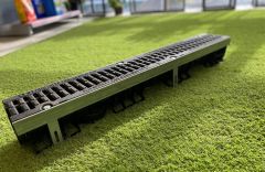Առավելությունները Հեշտ տեղափոխում և տեղադրում; Թեթև քաշ; Քիմիական դիմադրություն; պահպանման հեշտություն; Գործողության երկար ժամանակահատված: Վերևը փակված է ճեղքավոր թուջե բացվածքով վանդակաճաղով, որը կարող է դիմակայել մինչև 25 տոննա բեռների։ Վանդակաճաղը ապահովում է հետիոտների շարժման անվտանգությունը և պաշտպանում է ջրահեռացման ուղիները խոշոր բեկորներով խցանումից: Կիրառման տարածք Շենքերի մայթեր; Մայթեր; Հեծանվային ուղիներ; Հետիոտնային տարածքներ; Ուղևորափոխադրումների ցածր ծավալ ունեցող տարածքներ.